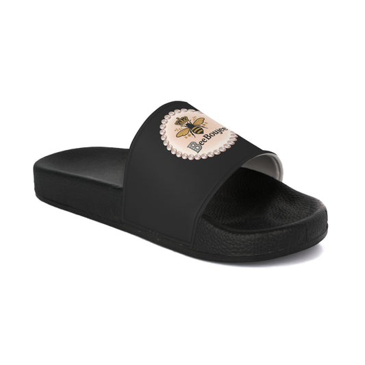 Bee Boujee Pearl-Emblem Women’s Slides Sandals, Summer Footwear, Cute Beach Slippers, Casual Slip-Ons
