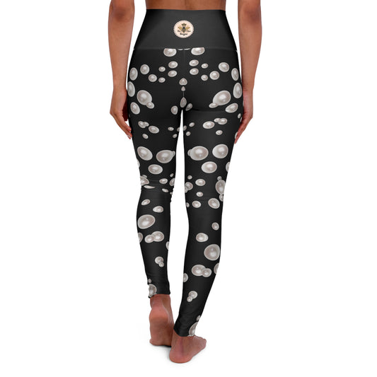 "The Boujee Hive" Stylish High Waisted Yoga Leggings with Pearls Print - MEDIUM