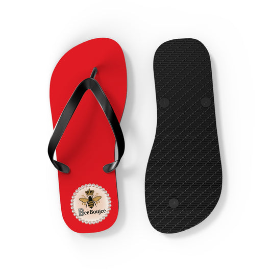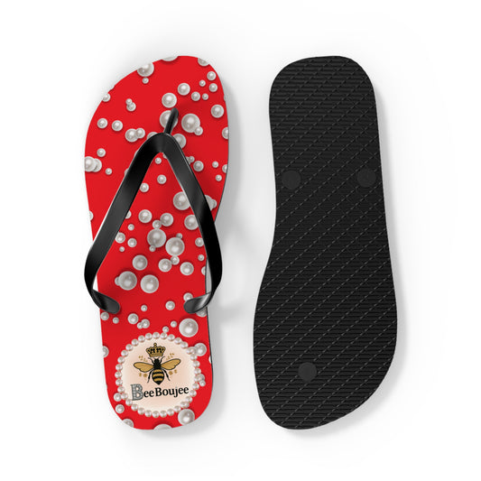 Bee Boujee Crowned-Bee RED (Sea of Pearls) Flip-Flops - SMALL