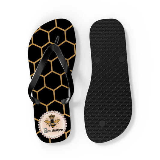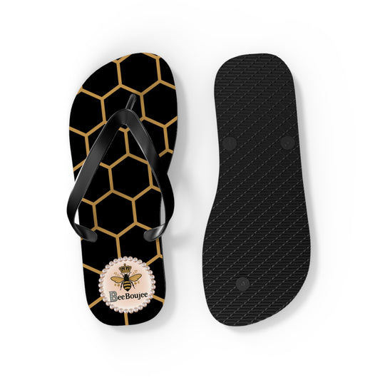 Bee Boujee Flip Flops - BLACK Golden Honeycomb - LARGE