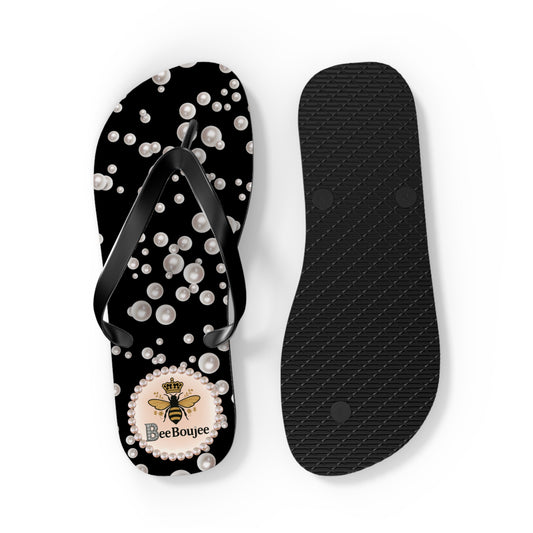 Bee Boujee Flip Flops - BLACK in Sea of Pearls - LARGE