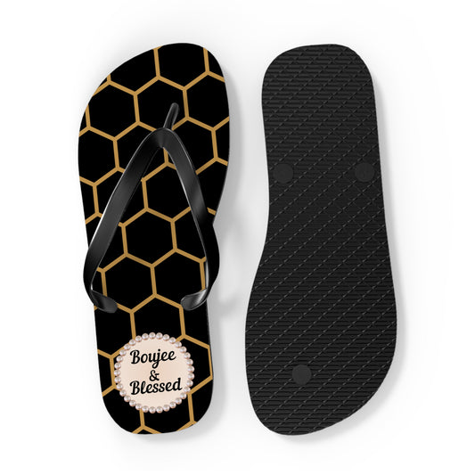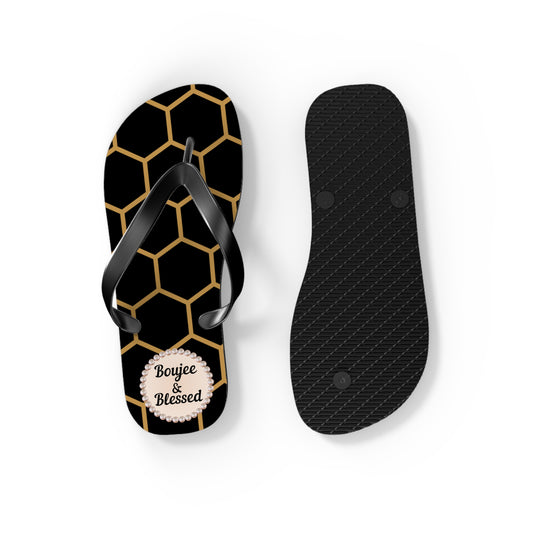 Boujee & Blessed Flip Flops - BLACK Golden Honeycomb - MEDIUM