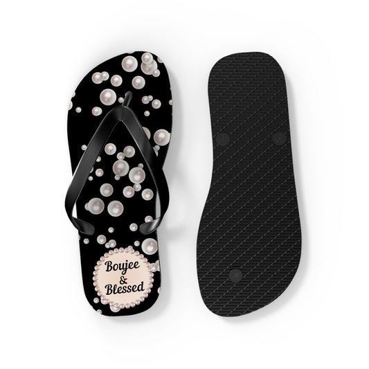 Boujee & Blessed Flip Flops - BLACK in Sea of Pearls - MEDIUM