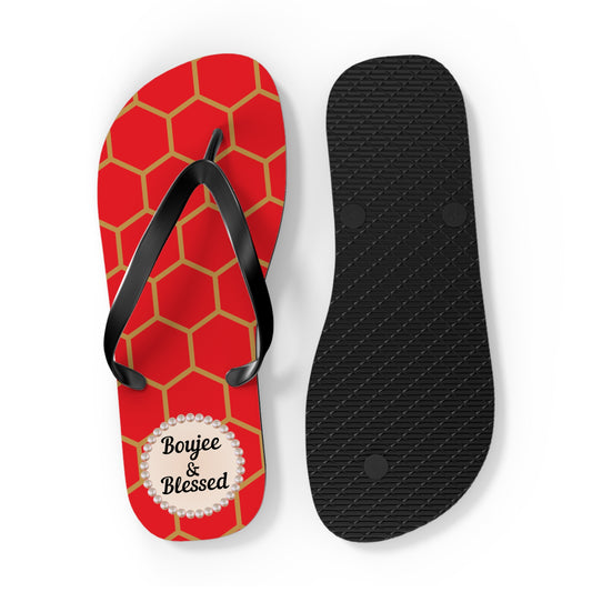 Boujee & Blessed Flip-Flops (RED/Golden Honeycomb) - SMALL