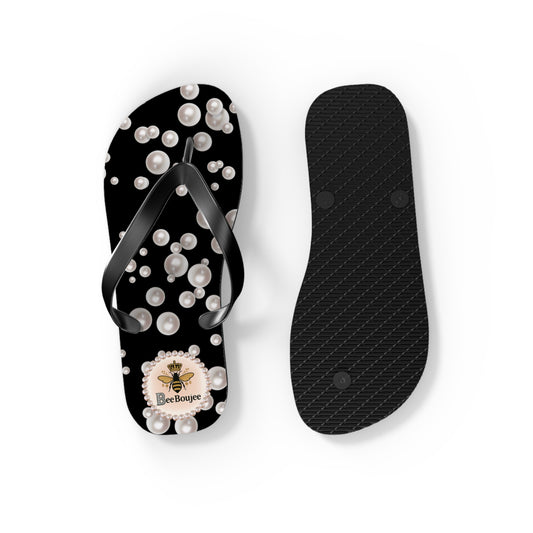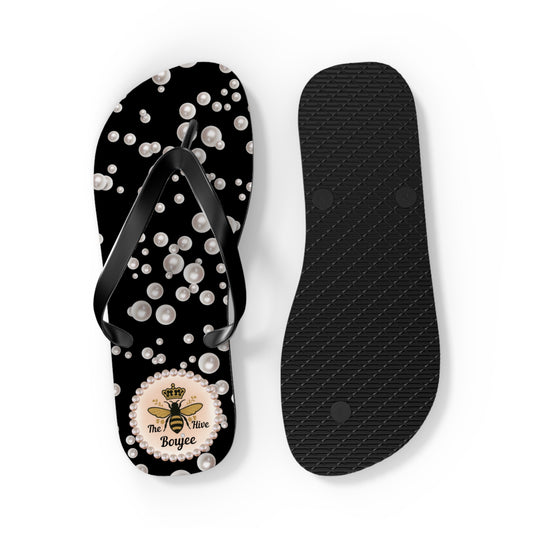 The Boujee Hive Flip Flops - BLACK in Sea of Pearls - LARGE