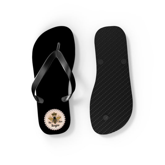 The Boujee Hive Crowned-Bee BLACK Flip-Flops - SMALL