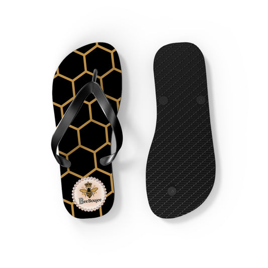 The Boujee Hive Flip Flops - BLACK Golden Honeycomb - LARGE