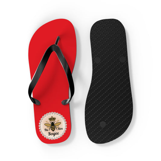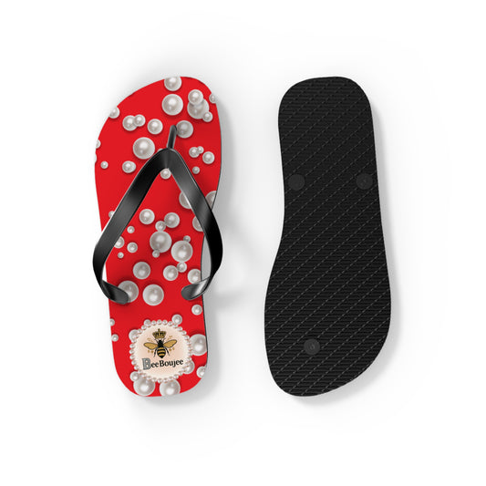 Bee Boujee Crowned-Bee RED (Sea of Pearls) Flip-Flops - SMALL
