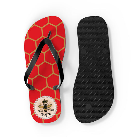 The Boujee Hive Flip Flops - RED Golden Honeycomb - LARGE