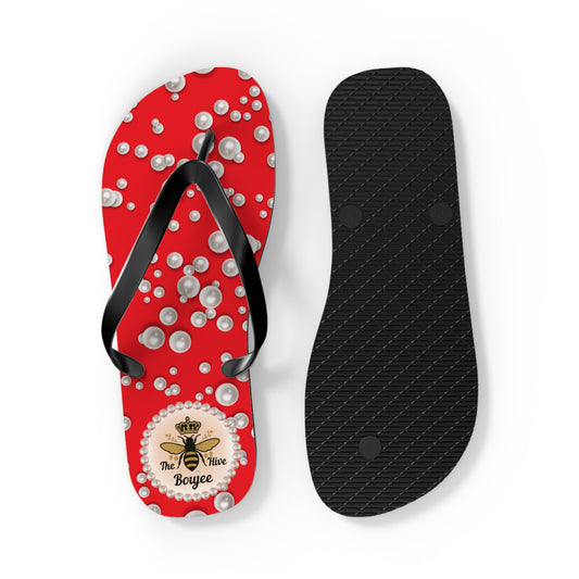 The Boujee Hive Flip Flops - RED in Sea of Pearls - LARGE