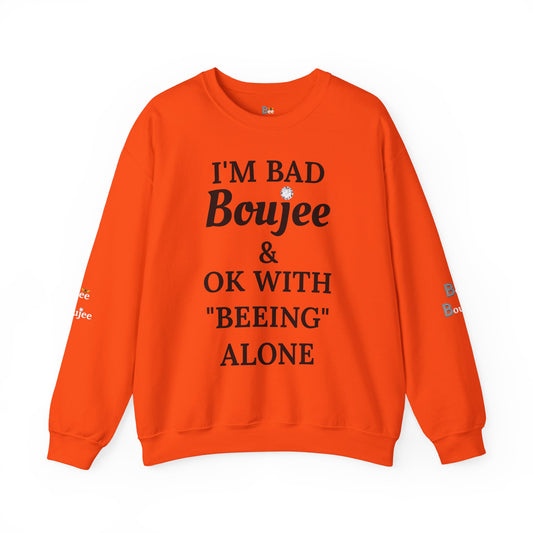 I'm Bad Boujee & Ok With "Beeing" Alone - Heavy Blend™ Dark Colors Crewneck Sweatshirt