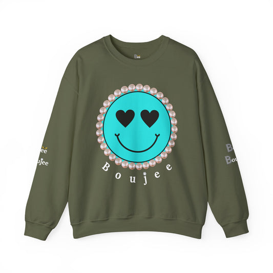 Bee Boujee - Boujee Smiley Face Turquoise in Diamonds Heavy Blend™ Dark Colors Crewneck Sweatshirt