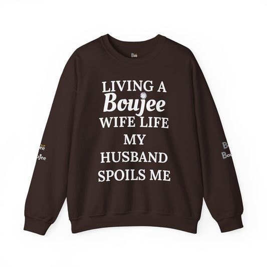 Living a Boujee Wife Life My Husband Spoils Me - Heavy Blend™ Dark Colors Crewneck Sweatshirt