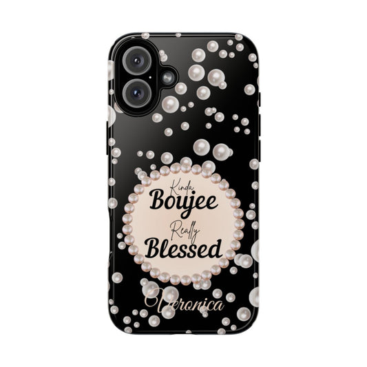 Personalized Boujee - Themed Tough iPhone 16 Pro Max Case (Black or Pearl Emblem)