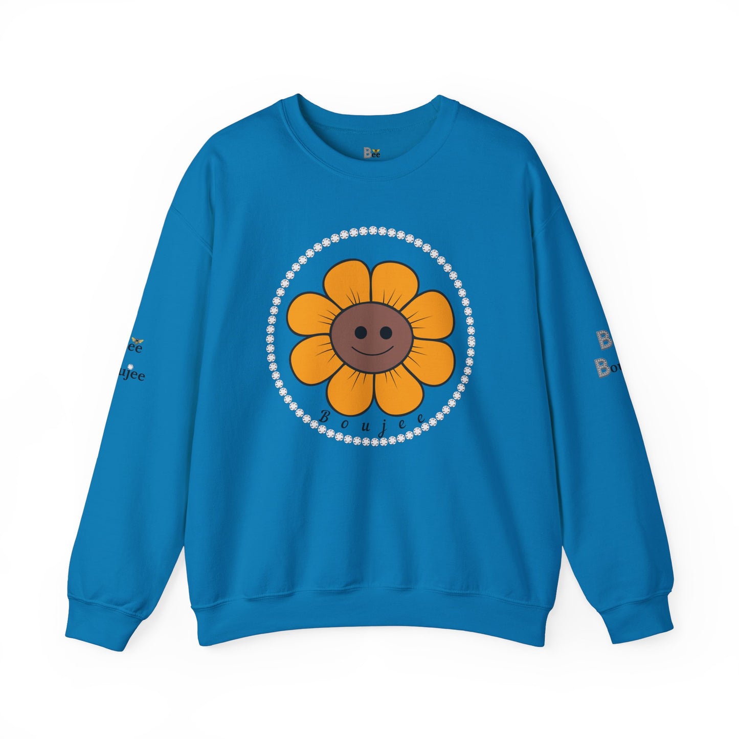 Boujee Flower Smiley Face Gold Brown - Heavy Blend™ Light Colors Crewneck Sweatshirt