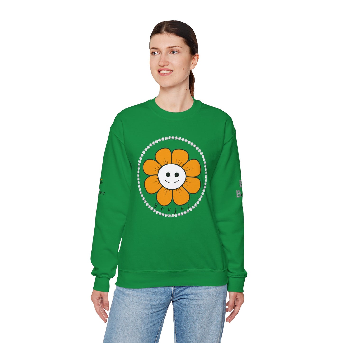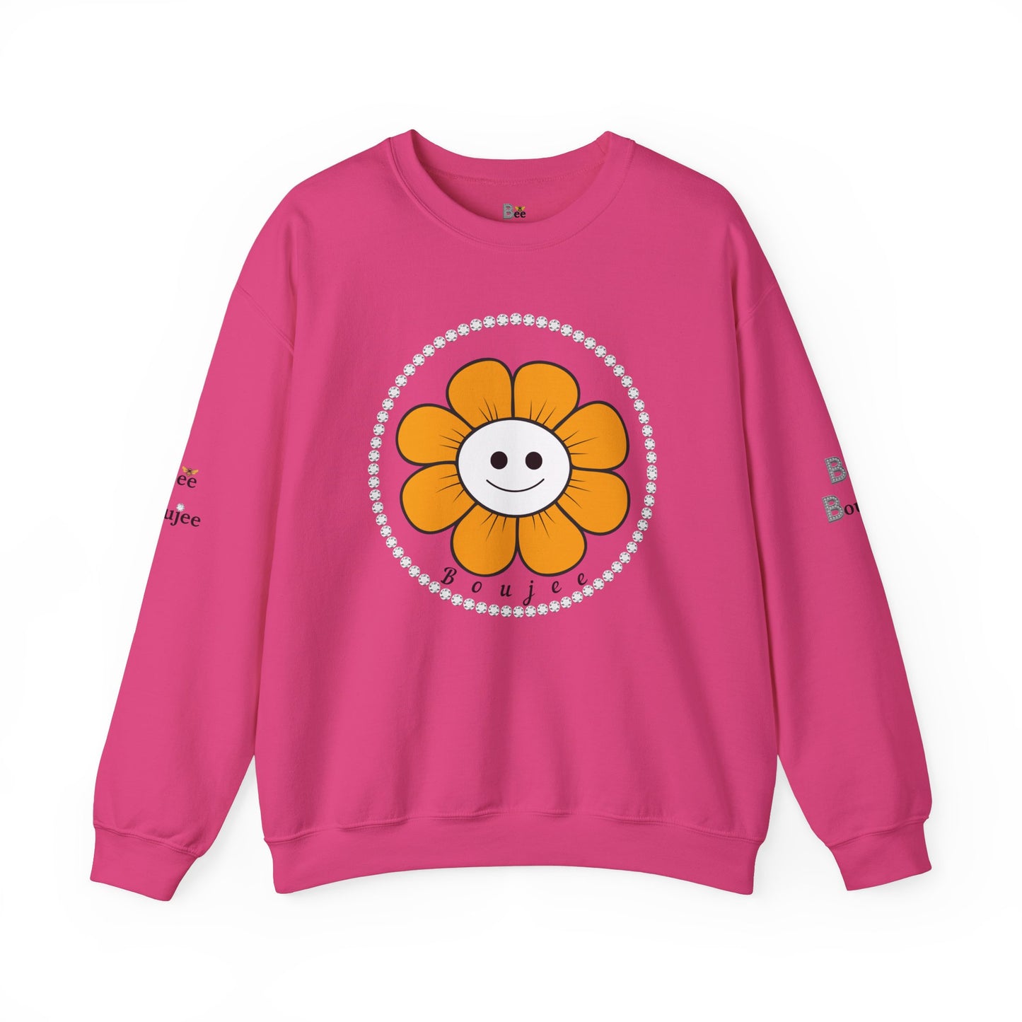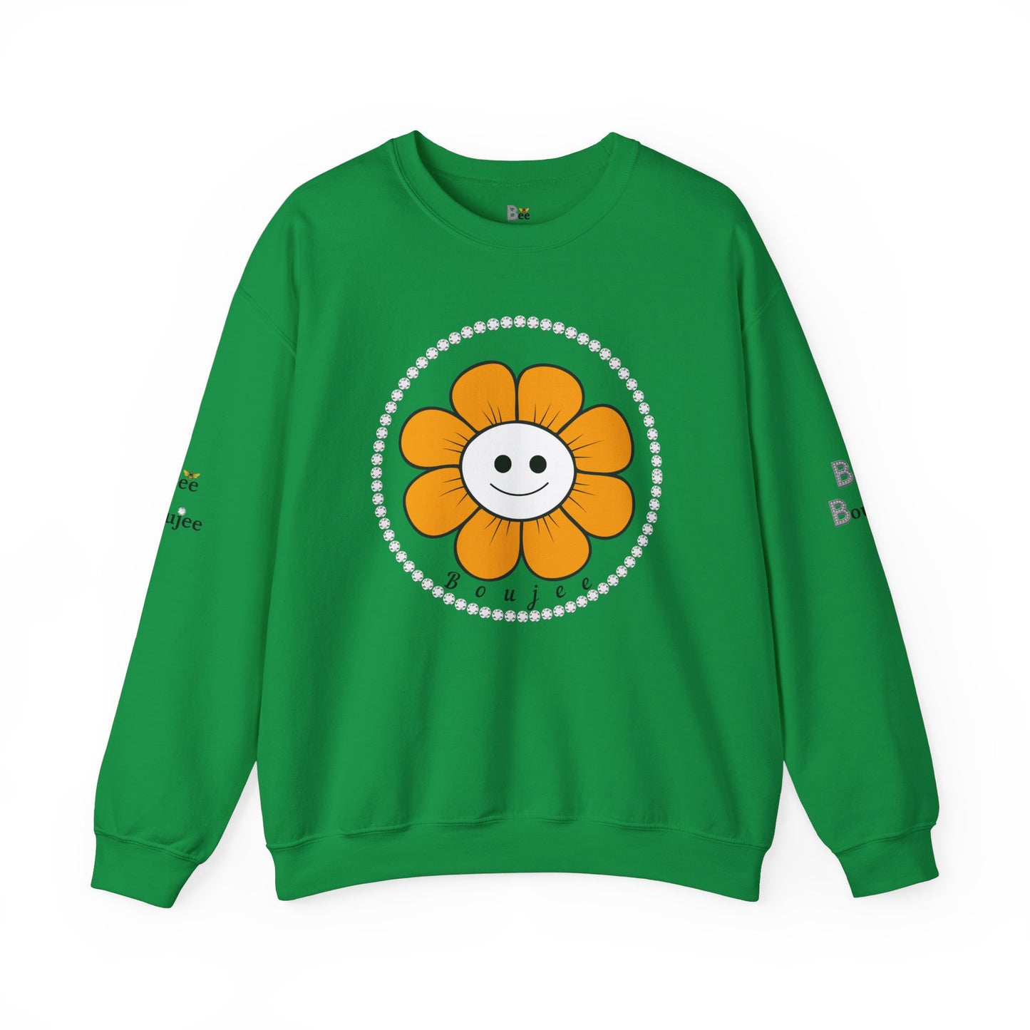 Boujee Flower Smiley Face Gold White - Heavy Blend™ Light Colors Crewneck Sweatshirt