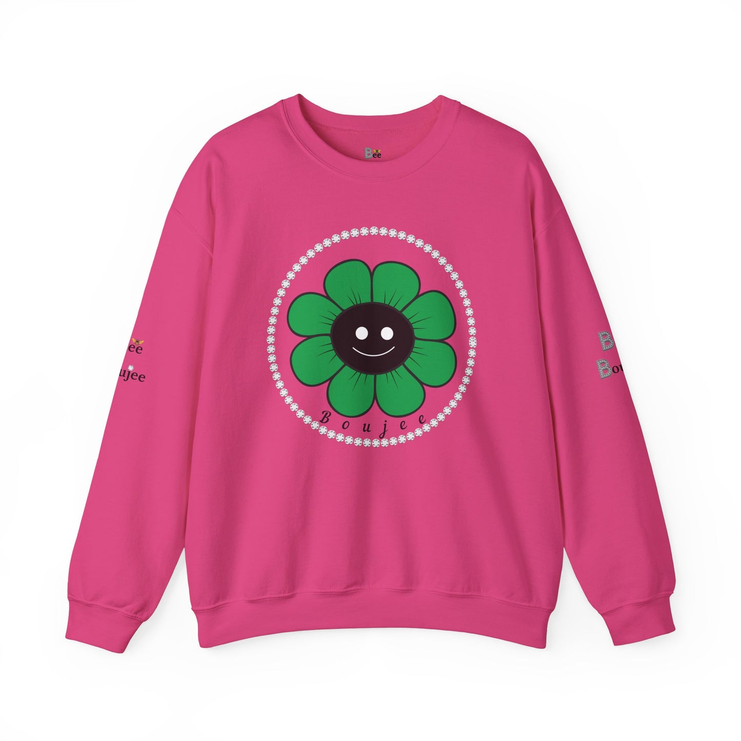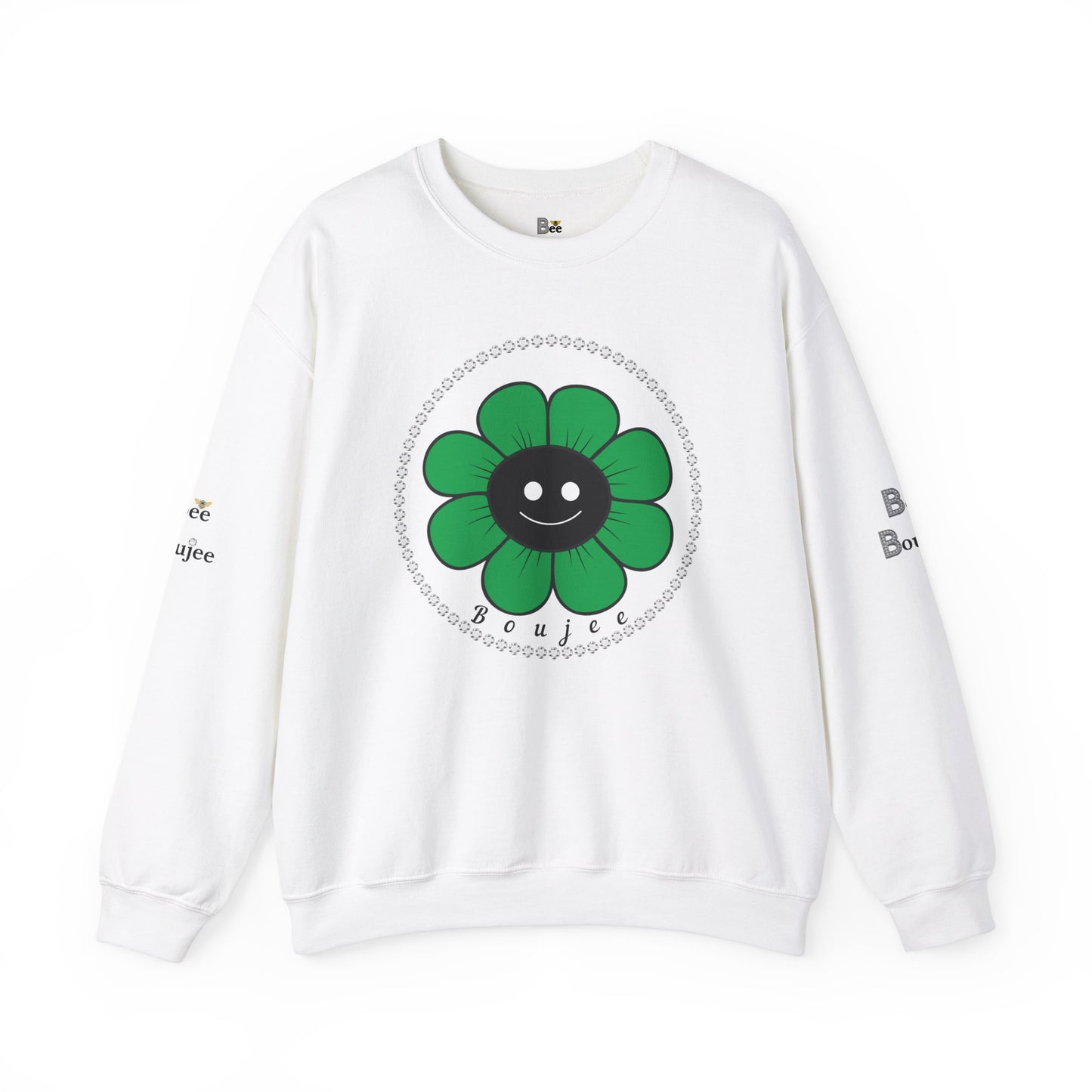 Boujee Flower Smiley Face Green Black - Heavy Blend™ Light Colors Crewneck Sweatshirt