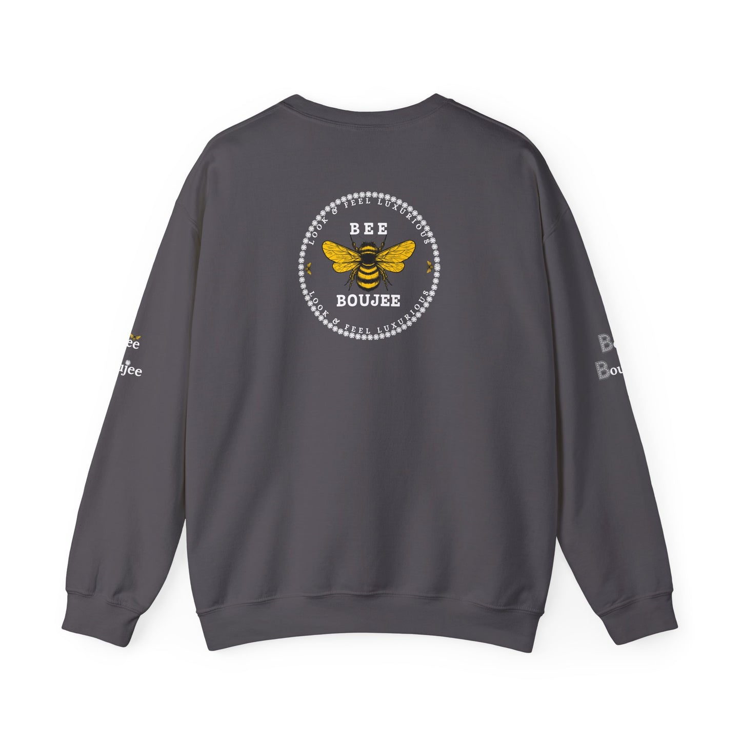 This "Bee" Boujee sweatshirt was designed with you in mind - to encourage you to "bee" boujee and to look & feel luxurious. It exudes a sense of style and elegance, perfect for those who want to make a statement "in diamonds" while staying cozy during the colder months. Ideal for women who appreciate unique and empowering designs, this sweatshirt is relevant for casual wear, holiday gatherings, and everyday luxury.
