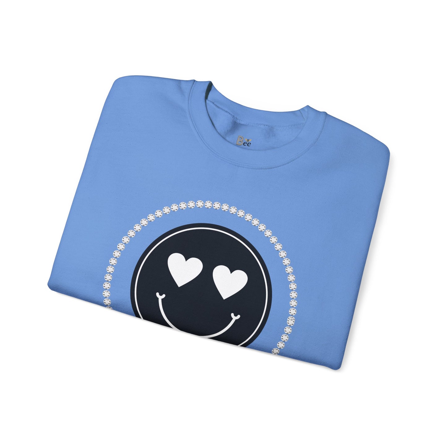 Boujee Smiley Face Heart Eyes Black - Heavy Blend™ Light Colors Crewneck Sweatshirt
