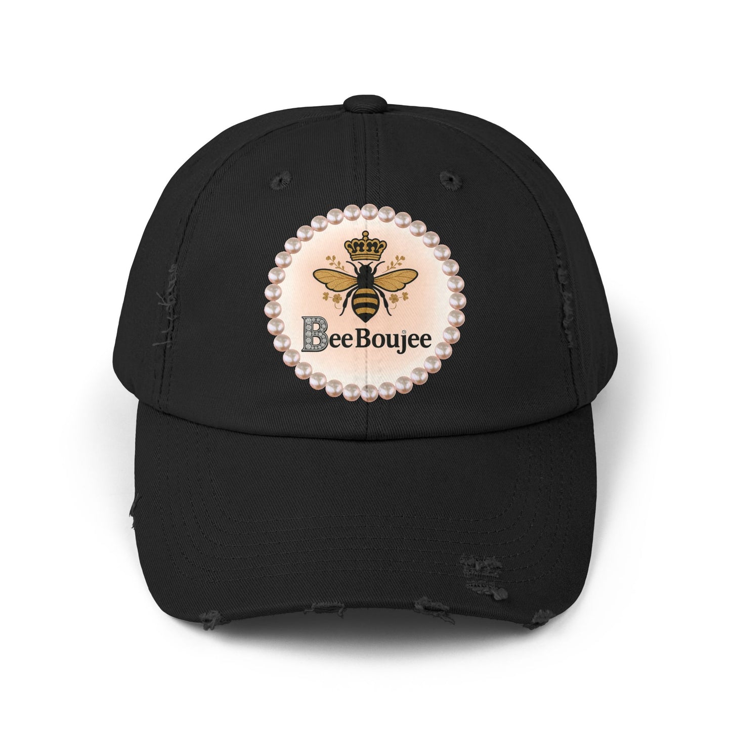 Top off any look with our Bee Boujee Distressed Pearl-Emblem Cap, where vintage vibes meet boujee charm. Crafted from soft, garment-washed cotton twill, this hat features intentional distressing for lived-in character and an eye-catching pearl-framed Bee Boujee crest front-and-center. An adjustable metal buckle strap ensures a custom fit, while the pre-curved brim keeps the sun at bay. Effortlessly versatile—pair it with jeans, shorts, athleisure or a cute dress—this cap brings a laid-back yet luxe edge to beach days, brunch runs, festivals, relaxed gatherings and beyond. A perfect gift for anyone who loves relaxed style with a touch of glam. This cap is ideal for those who appreciate personality in their wardrobe, as it appeals to fashion-forward individuals looking for a standout piece. Celebrate holidays, birthdays, or just a sunny day with this versatile cap, making it a thoughtful gift for friends and family who value unique boujee fashion.