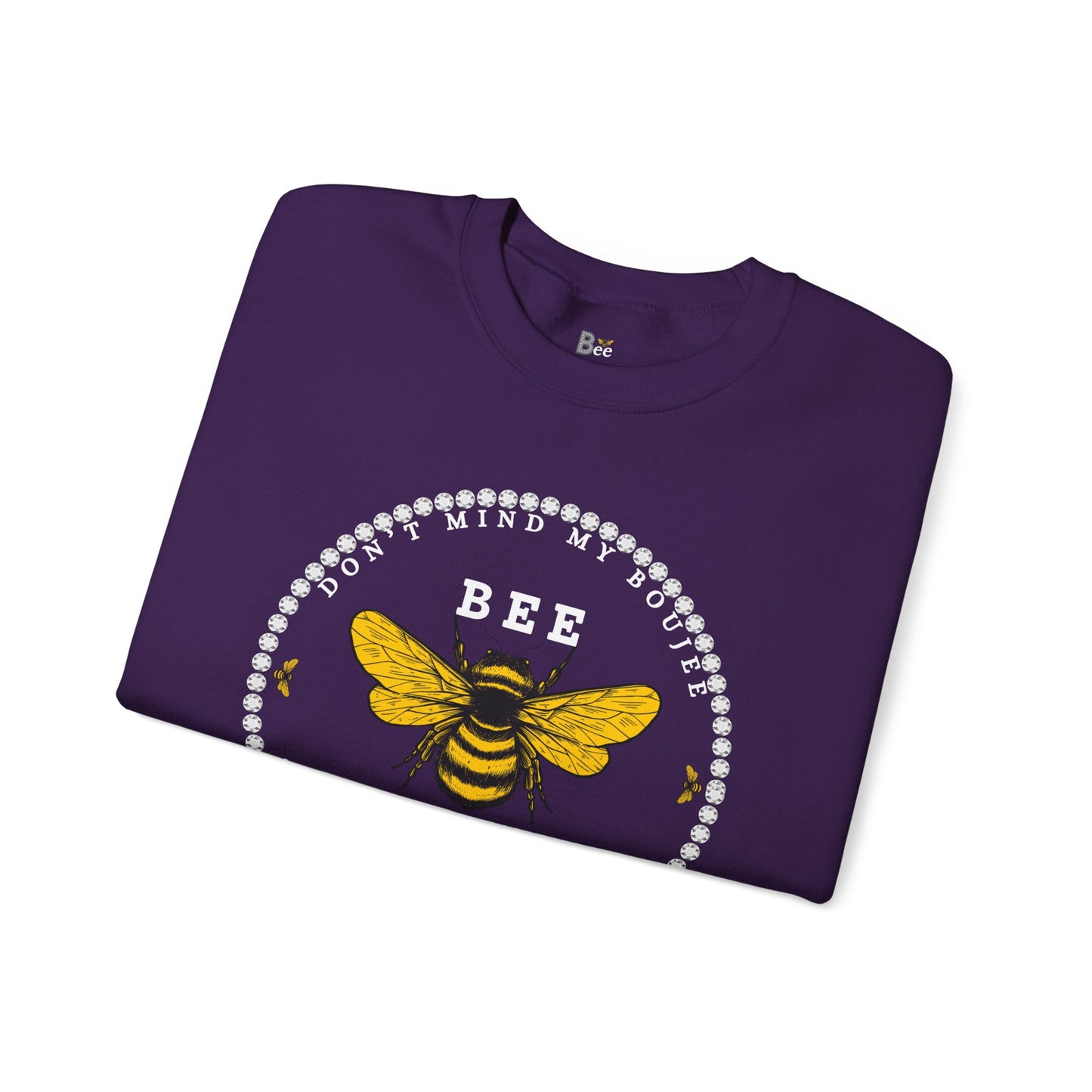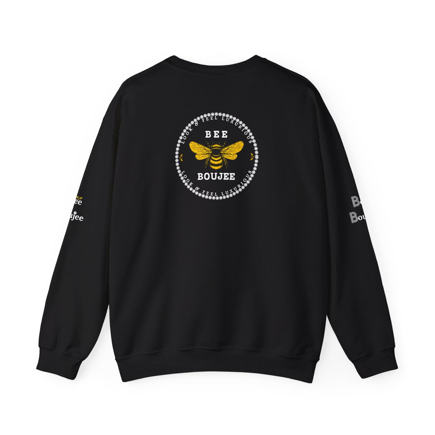 This "Bee" Boujee sweatshirt was designed with you in mind - to encourage you to "bee" boujee and to look & feel luxurious. It exudes a sense of style and elegance, perfect for those who want to make a statement "in diamonds" while staying cozy during the colder months. Ideal for women who appreciate unique and empowering designs, this sweatshirt is relevant for casual wear, holiday gatherings, and everyday luxury. P