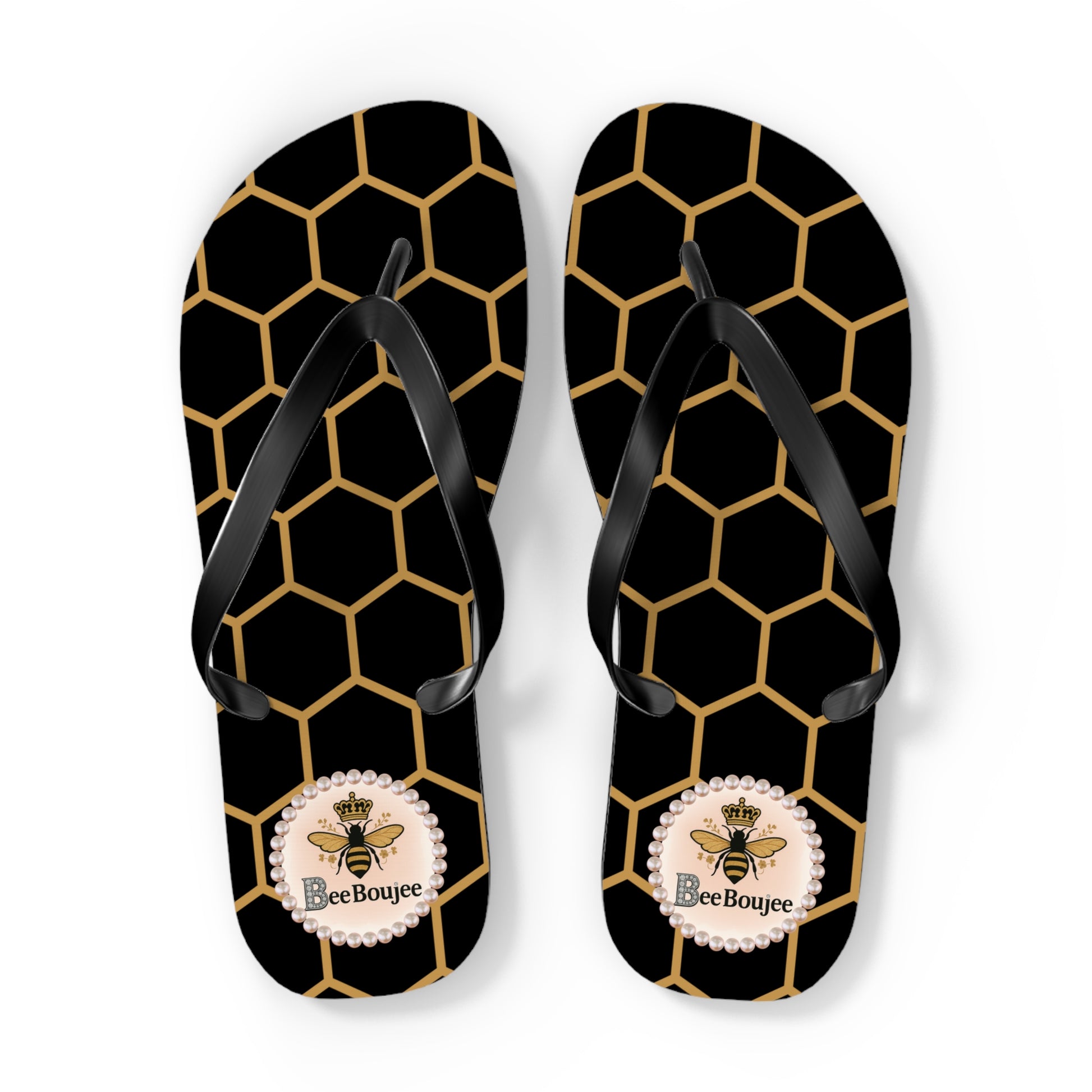 Bee Boujee Flip Flops - BLACK Golden Honeycomb - EXTRA LARGE