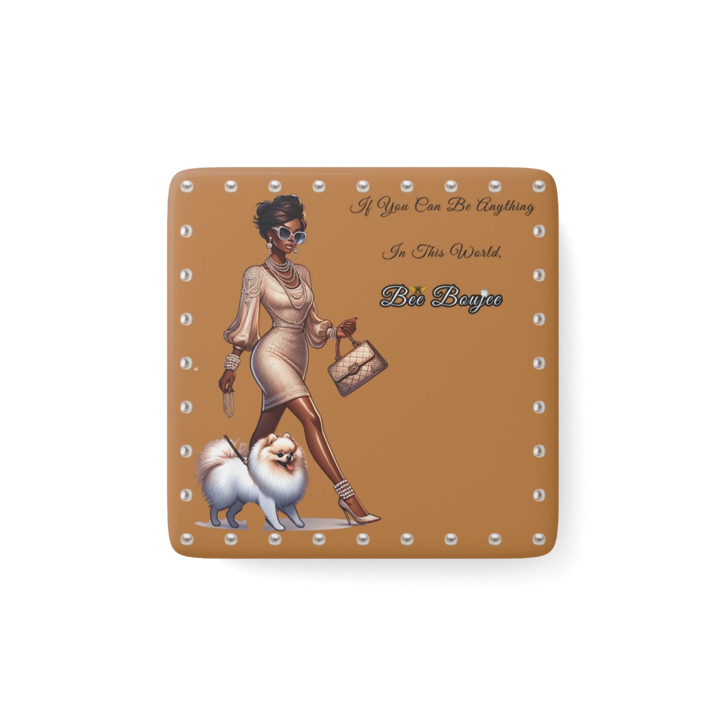 Bee Boujee in PEARLS - Porcelain Magnet 02, Square BROWN