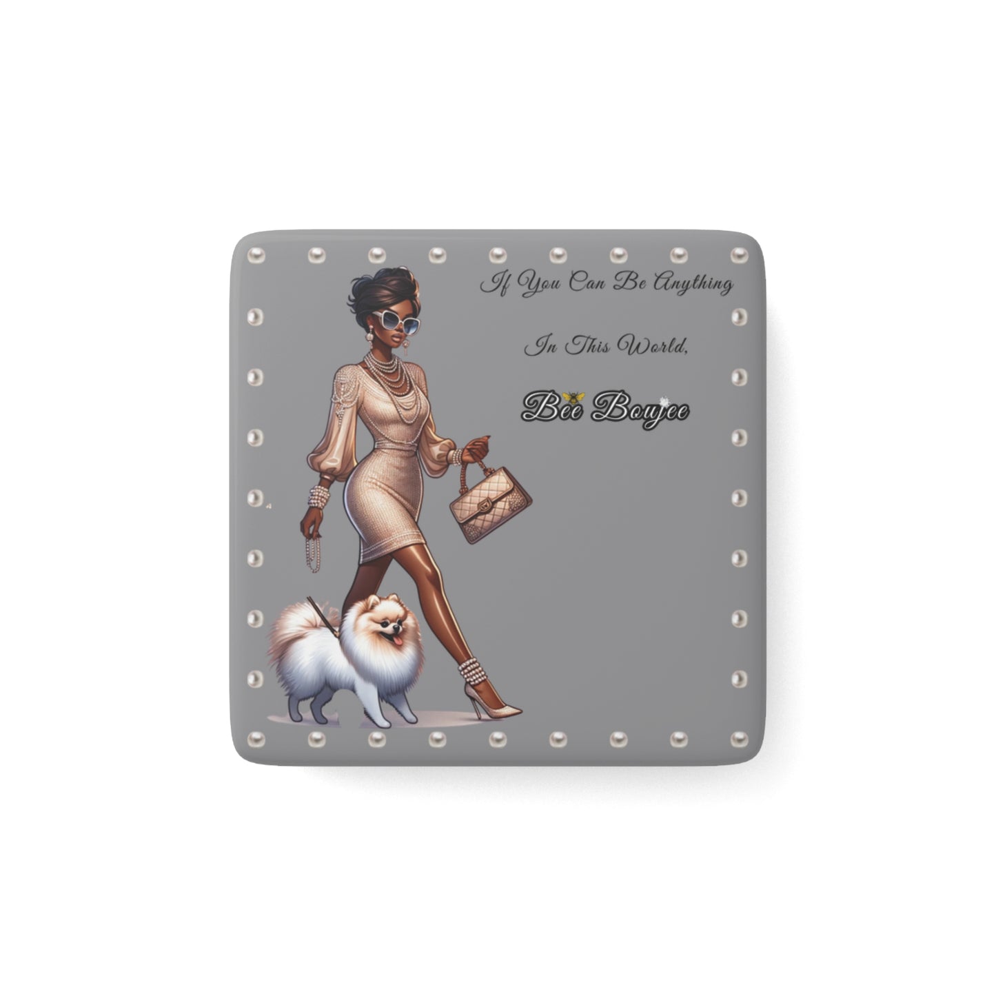 Bee Boujee in PEARLS - Porcelain Magnet 02, Square GREY