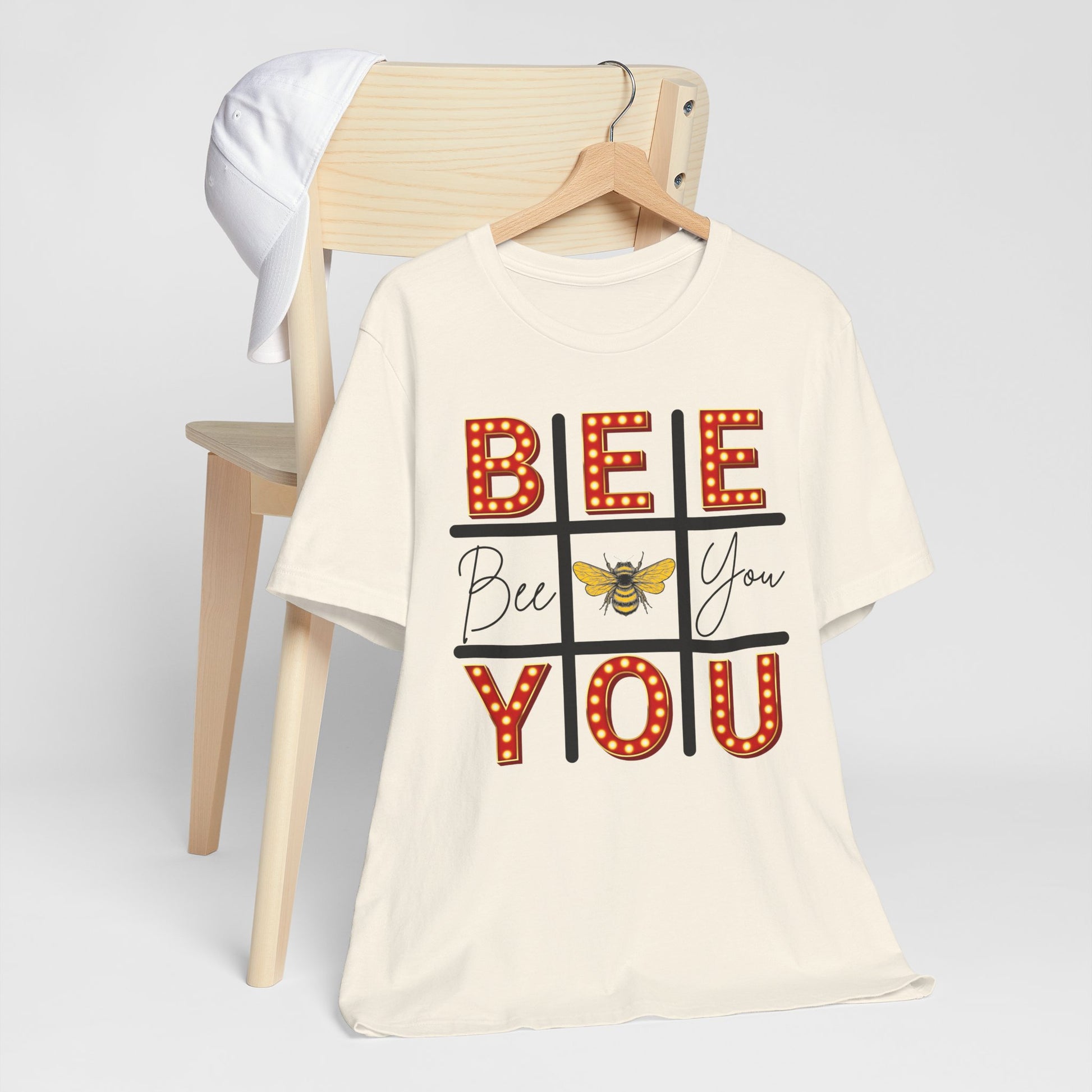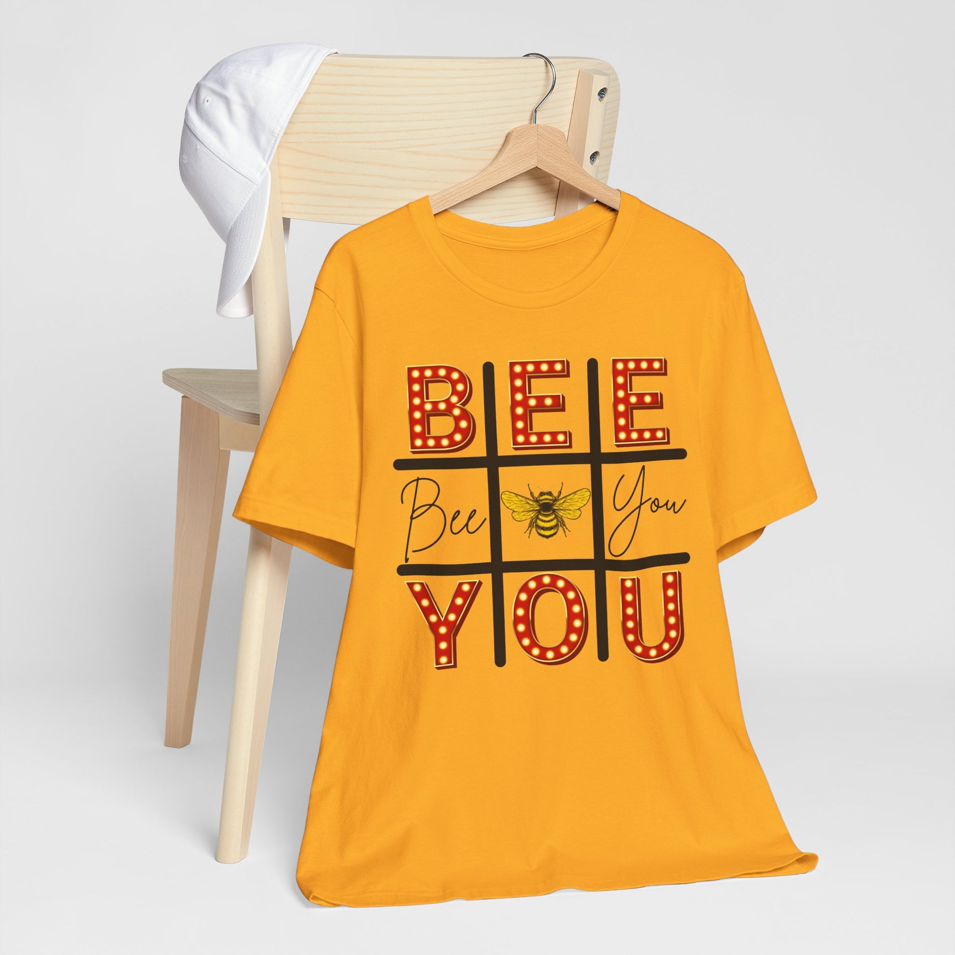 Shine in your own lane with this playful “BEE YOU” graphic tee—styled like a retro marquee and framed in a tic-tac-toe grid with a golden bee in the center. Soft, breathable cotton and a relaxed unisex fit make it an everyday confidence boost you’ll actually want to wear. Pair with denim or a skirt for instant personality. Perfect for self-care days, teacher gifts, and anyone who needs a cute reminder: the win is being yourself.