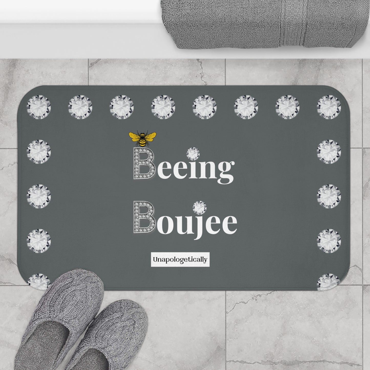Beeing Boujee - Bath Mat GREY with DIAMONDS