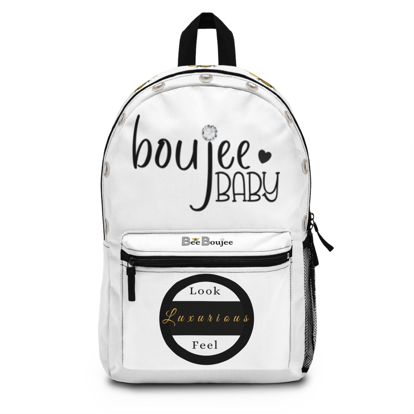 Have you got room for all that BABY STUFF? With our roomy and durable backpack, you will! This Boujee Babby, bag is perfect for holding all your baby's essentials & valuables. You & your baby will Look & Feel Luxurious as you carry this BackPack - there is also encouragement on the bottom to "Bee" Your Best Everyday...!! This bag is made from spun polyester and weights 1.3 lbs, just enough to be light, strong and long-lasting. Grab it, stow it, throw it onto the seat next to you, this backpack can take it, and so will you, wherever you go!