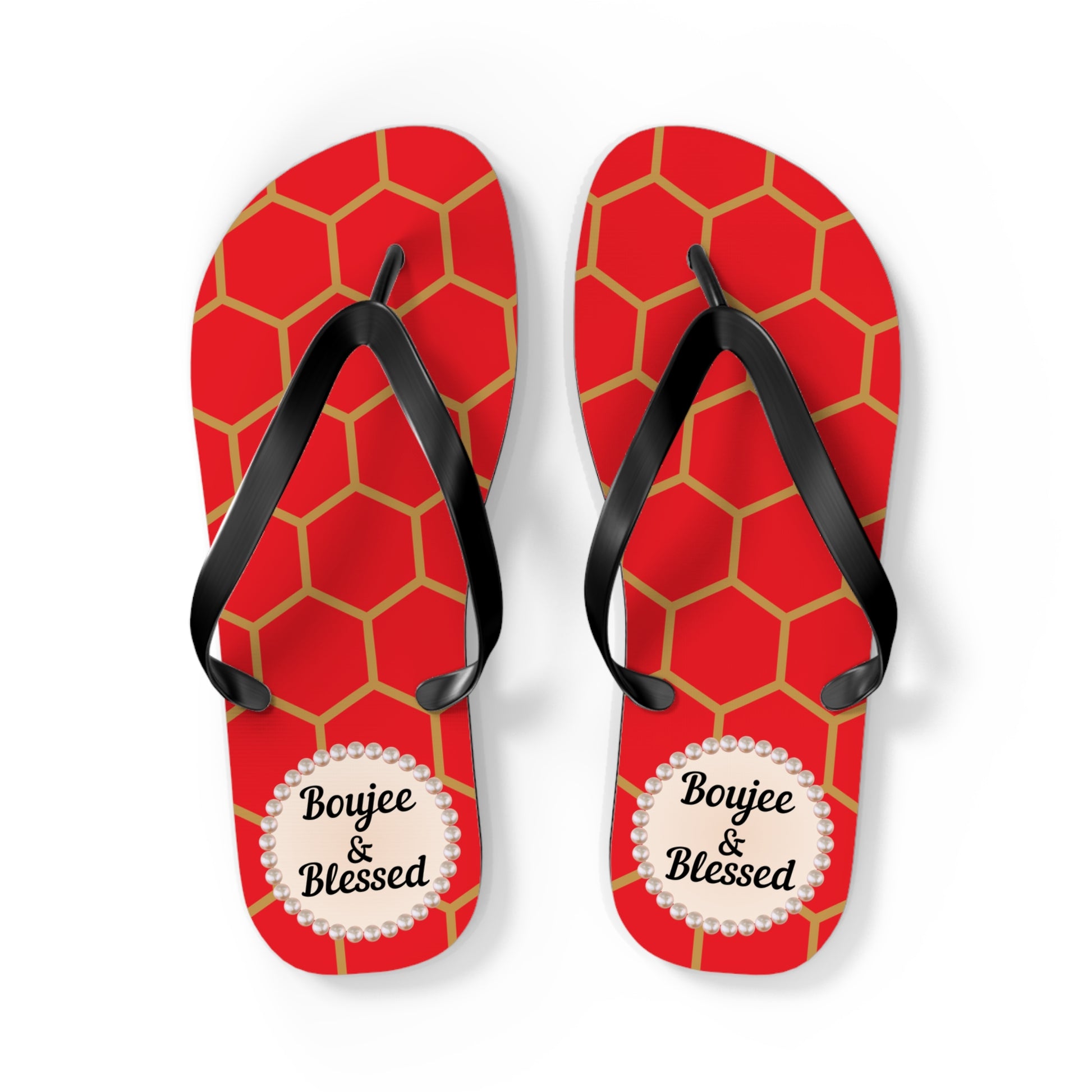 Boujee & Blessed Flip Flops - RED Golden Honeycomb - LARGE