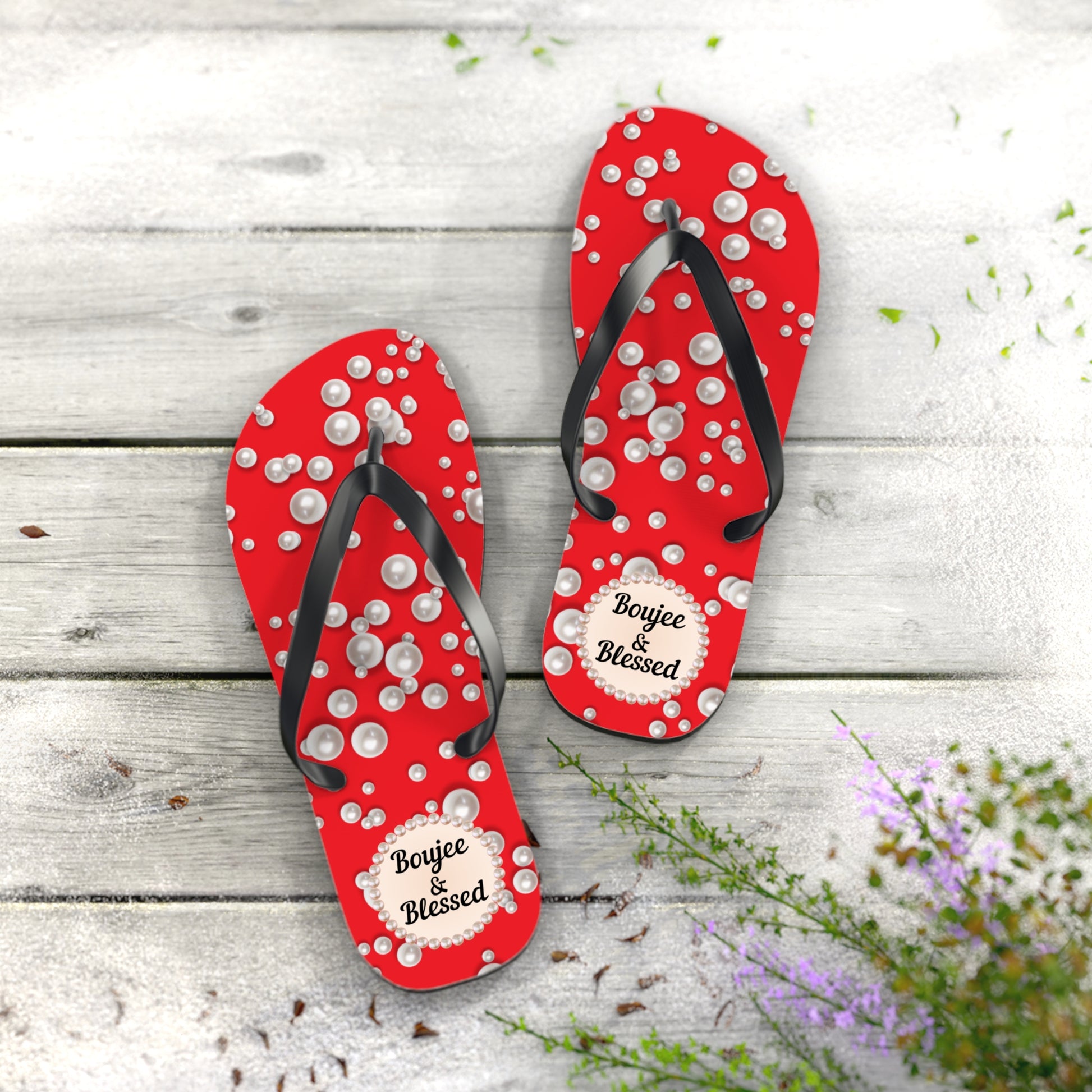 Boujee & Blessed Flip Flops - RED in Sea of Pearls - EXTRA LARGE