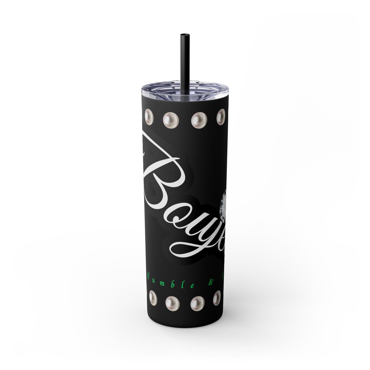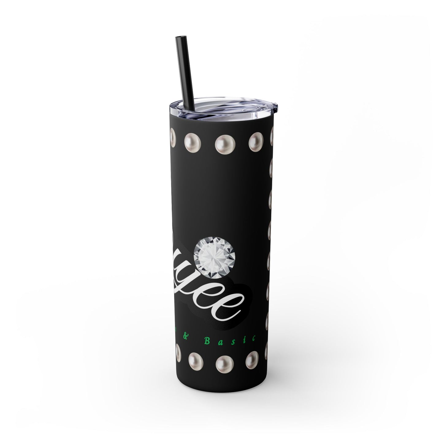 Boujee Yet Humble & Basic in PEARLS - Skinny Tumbler with Straw, 20oz