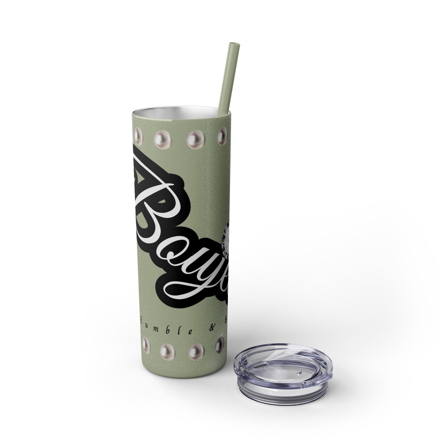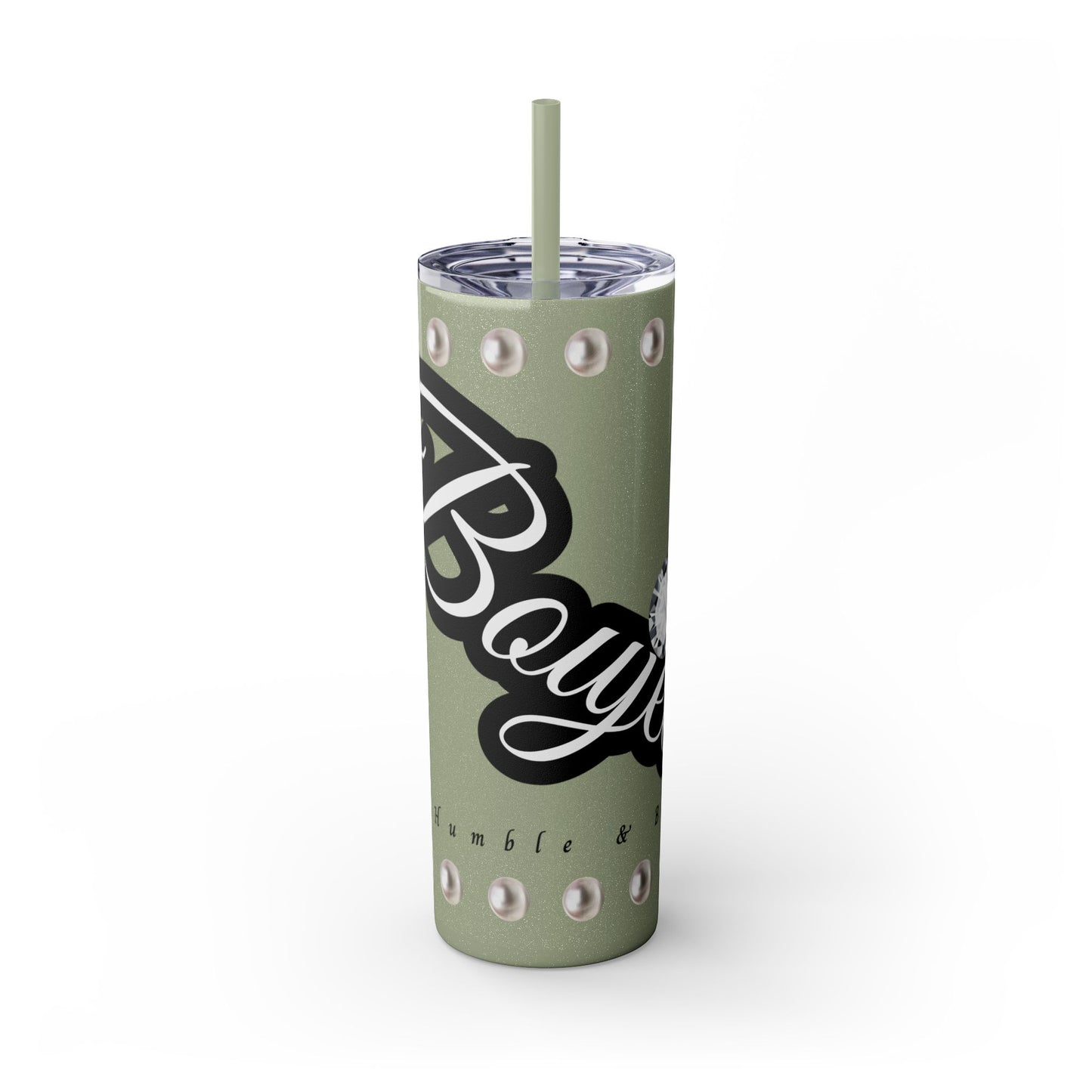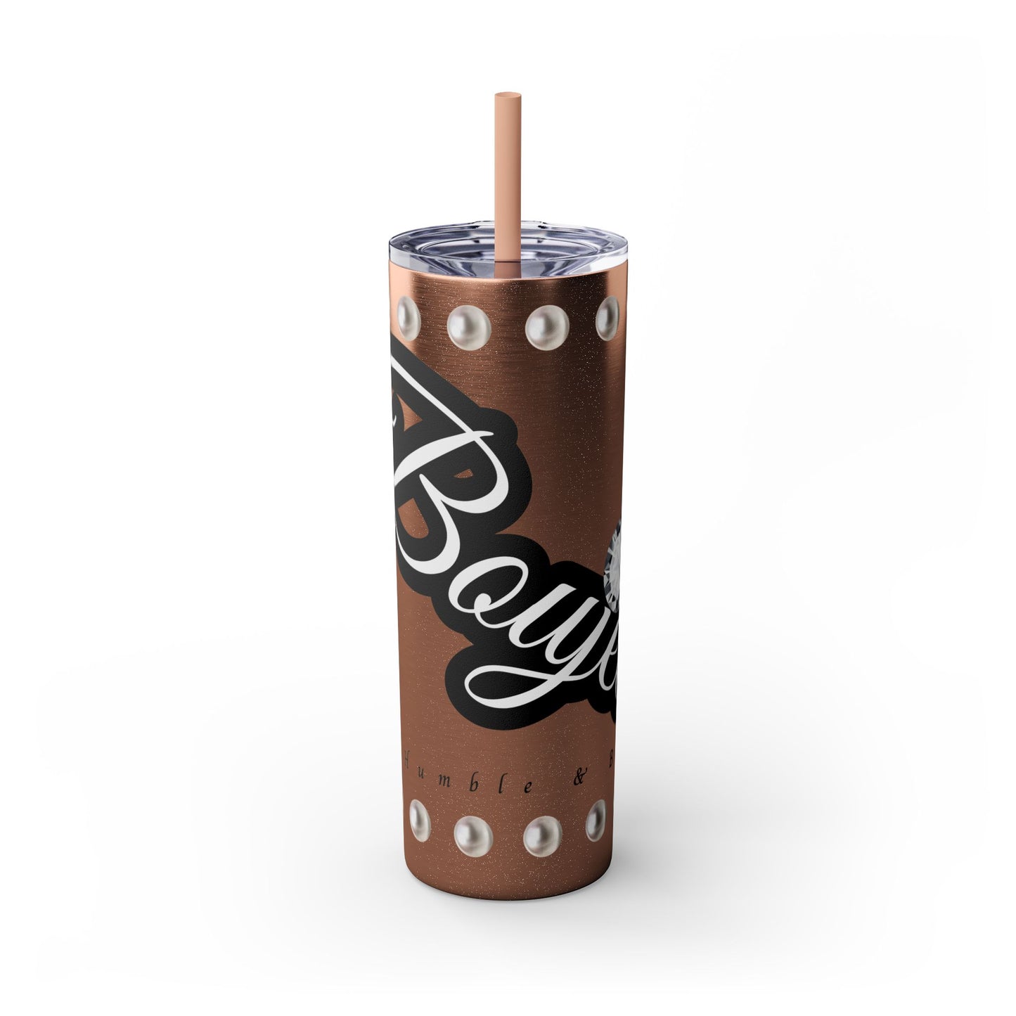 Boujee Yet Humble & Basic in PEARLS - Skinny Tumbler with Straw, 20oz