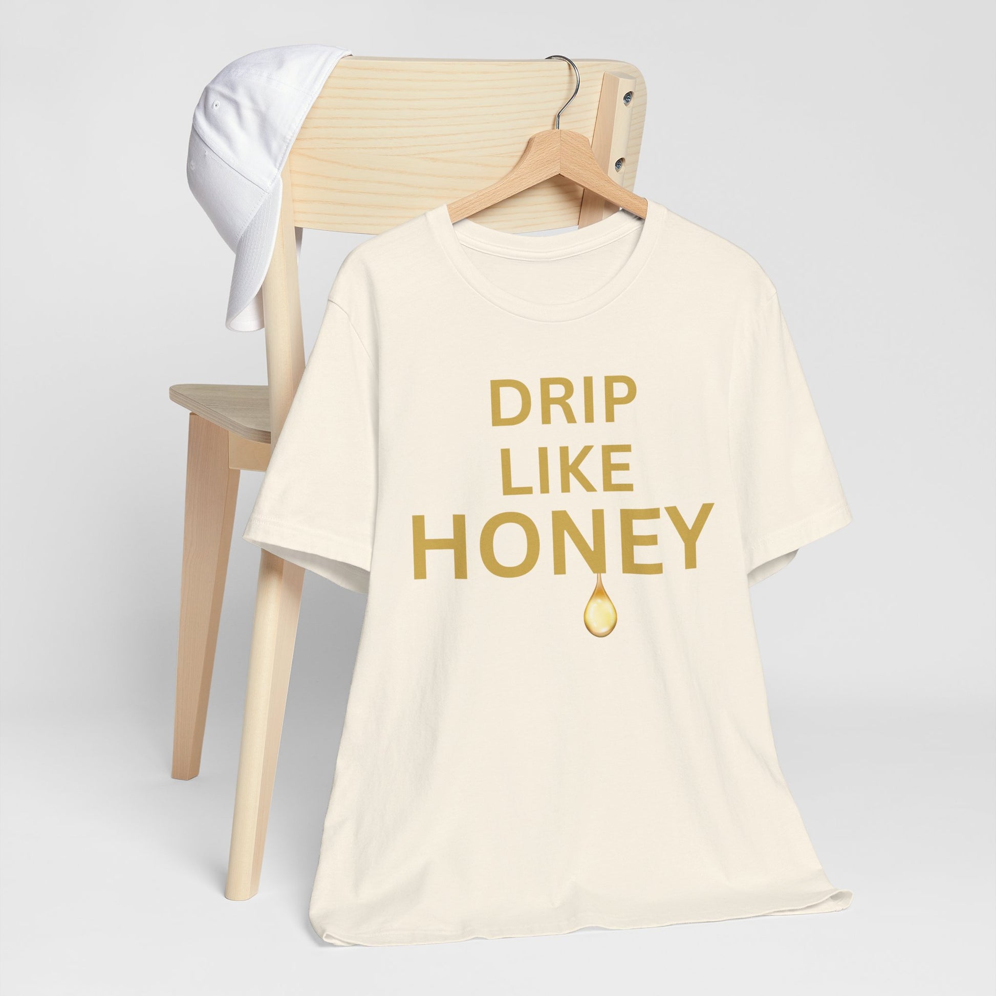 Serve sweet style with our DRIP LIKE HONEY tee—bold gold lettering and a glossy honey-drop graphic for vibes that are smooth, luxe, and a little spicy. Cut from buttery-soft, breathable combed cotton with a flattering fit, it pairs effortlessly with denim, biker shorts, or a blazer for maximum glam.