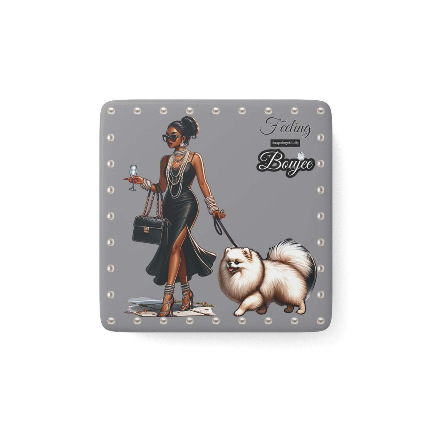 Feeling Boujee in PEARLS - Porcelain Magnet 02, Square GREY
