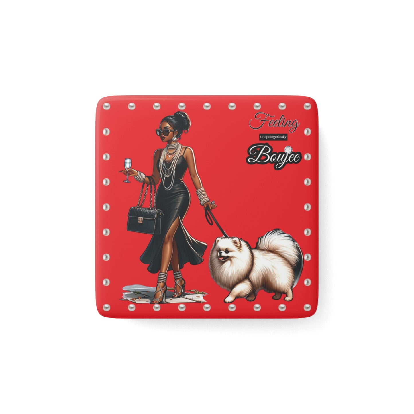 Feeling Boujee in PEARLS - Porcelain Magnet 02, Square RED