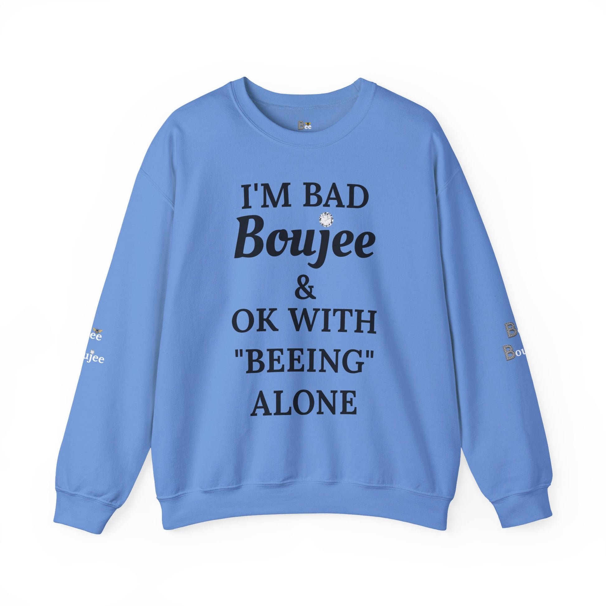 I'm Bad Boujee & Ok With "Beeing" Alone - Heavy Blend™ Light Colors Crewneck Sweatshirt
