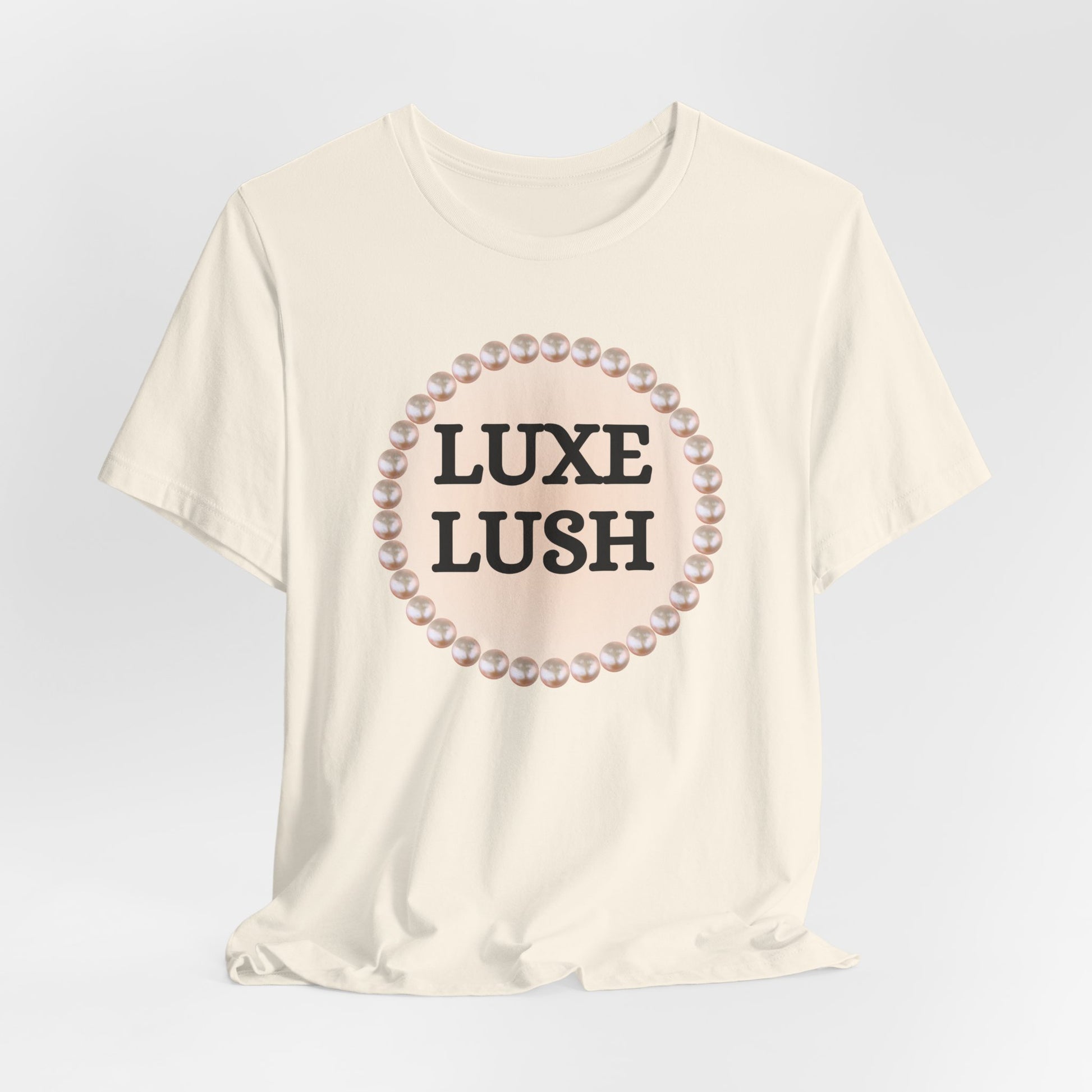 Turn everyday into first-class. This LUXE LUSH pearl-framed statement tee pairs rich, pearl frame with an upscale vibe that still keeps it playful. Cut in a flattering unisex fit from soft, breathable cotton, it drapes beautifully under a blazer, with denim, or tucked into a skirt. Dress it up, style it down—always feel polished. Perfect for luxe lovers, brunch besties, and anyone who likes their off-duty look a little extra.