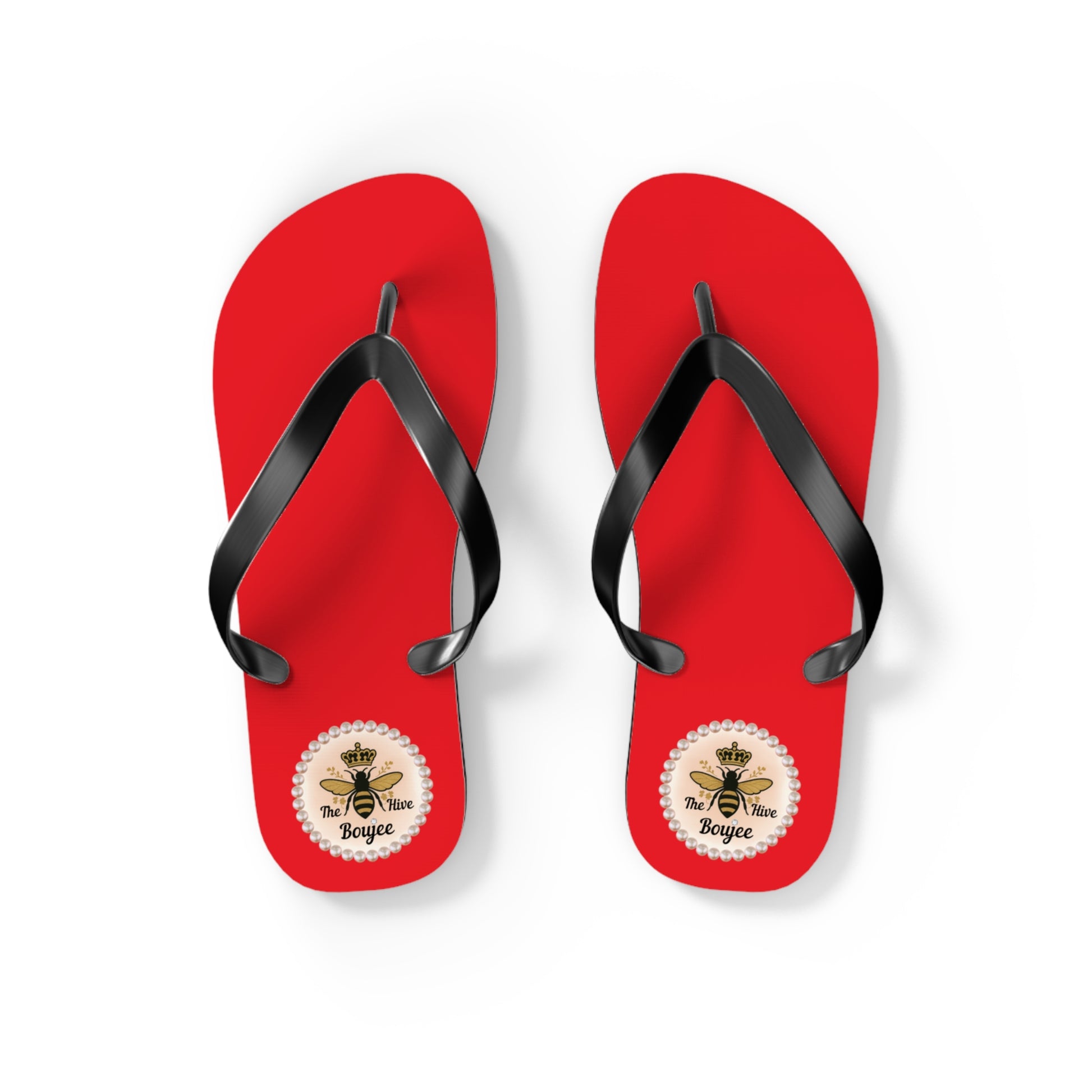 The Boujee Hive Crowned-Bee RED Flip-Flops - SMALL