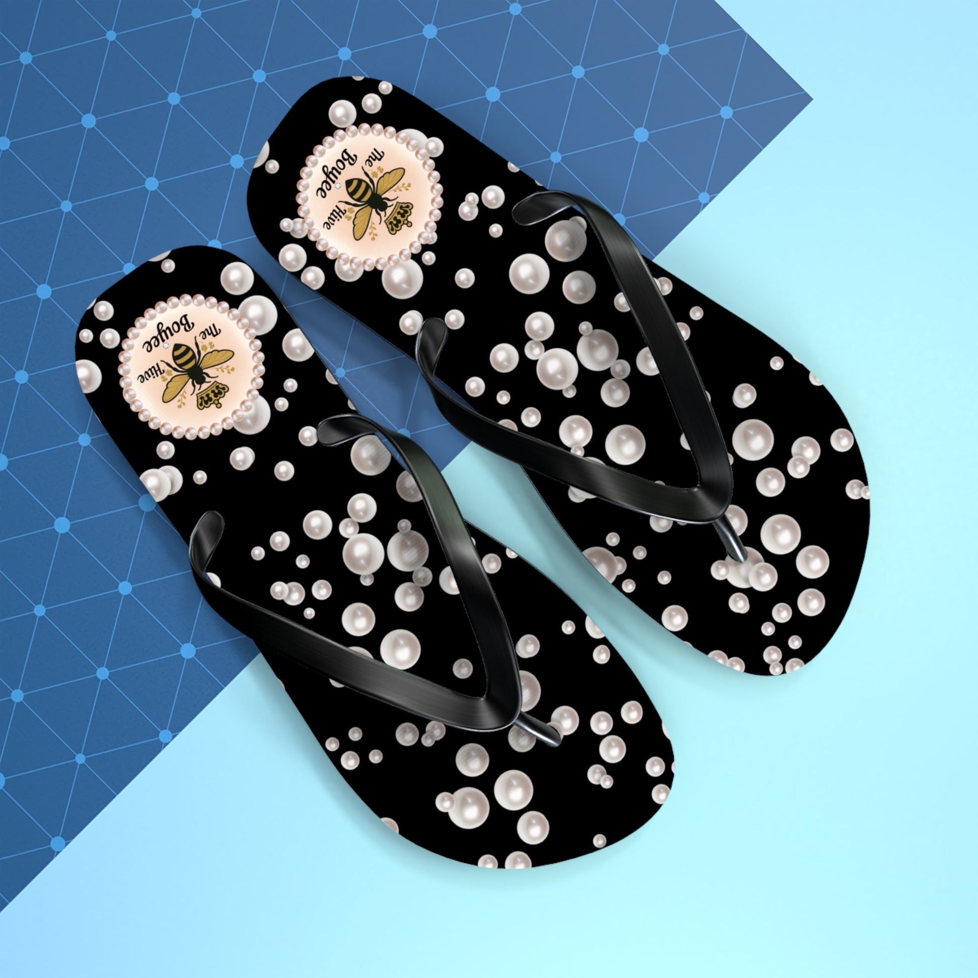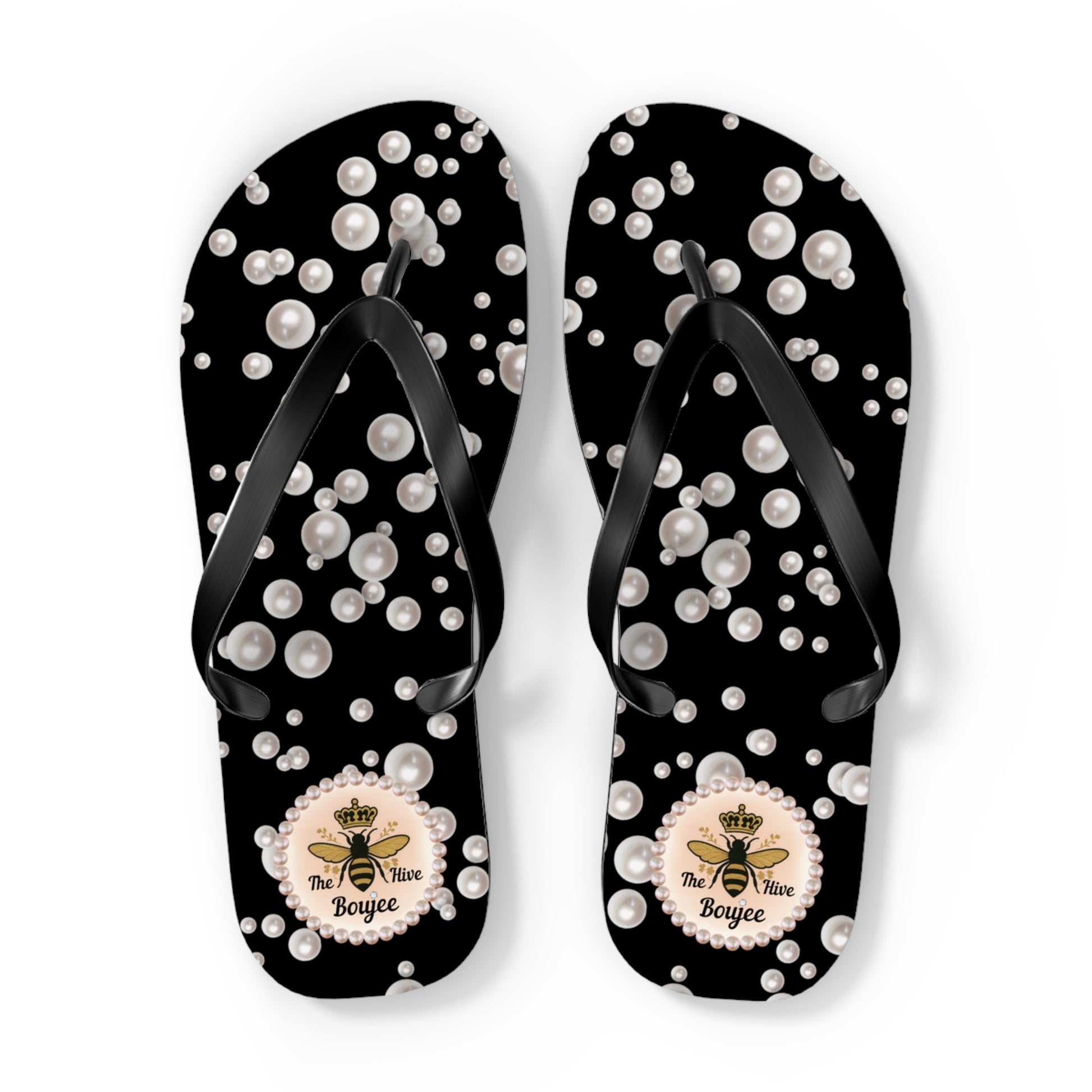 The Boujee Hive Flip Flops - BLACK in Sea of Pearls - EXTRA LARGE