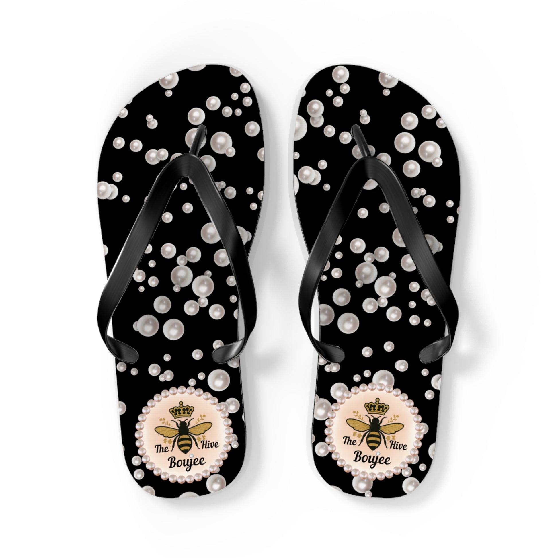 The Boujee Hive Flip Flops - BLACK in Sea of Pearls - LARGE