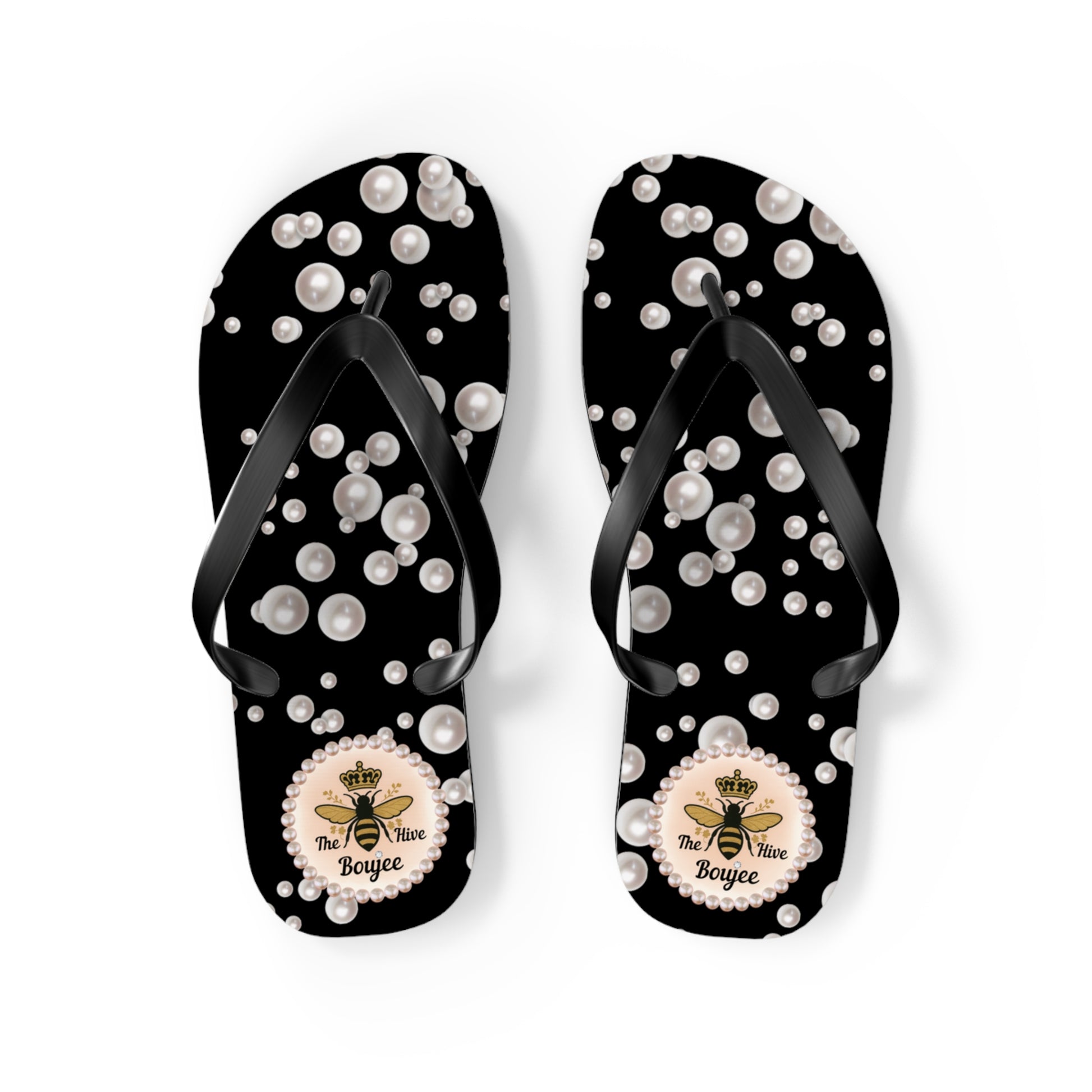 The Boujee Hive Flip Flops - BLACK in Sea of Pearls - MEDIUM
