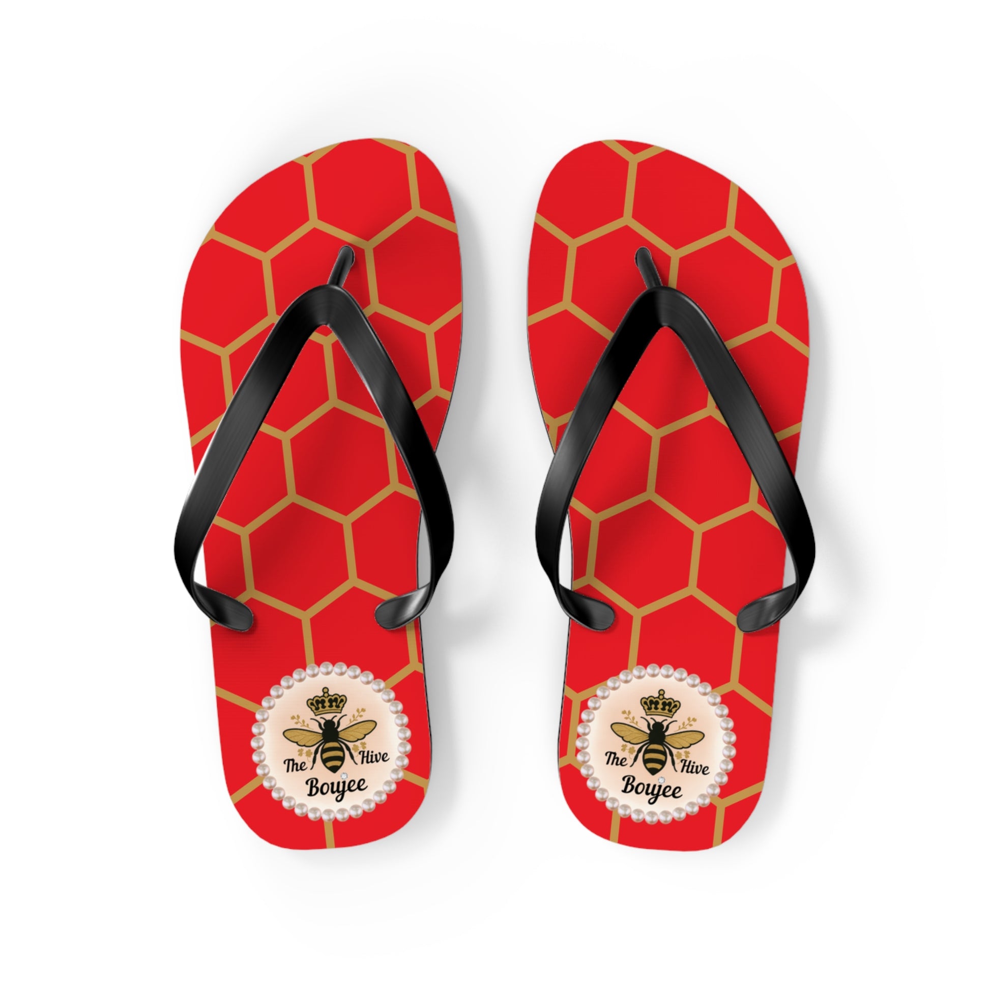 The Boujee Hive Flip Flops - RED Golden Honeycomb - MEDIUM